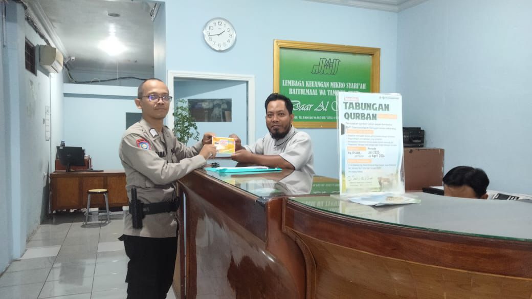 Ajak Warga Manfaatkan Call Center 110, Sat Binmas Lakukan Pemasangan Stiker di Koperasi BMT Darussalam