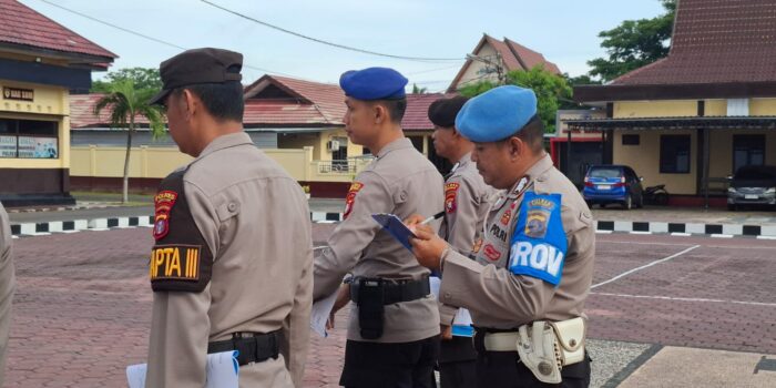 Personil Sipropam Polres Seruyan melakukan Pengecekan absensi kehadiran pada saat pelaksanaan apel, Selasa (04/11/2025) bertempat di Lapangan Apel Polres Seruyan.