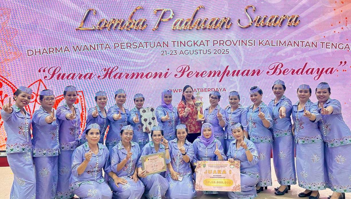 PURUK CAHU, Seruyannews.com – Prestasi membanggakan ditorehkan Dharma Wanita Persatuan (DWP) Kabupaten Murung Raya, yang berhasil meraih Juara I pada lomba paduan suara tingkat Provinsi Kalimantan Tengah. Lomba yang digelar dari 21 hingga 23 Agustus 2025 ini diikuti perwakilan 13 Kabupaten dan 1 Kota se-Kalimantan Tengah.
