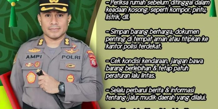 Seruyannews.com, Kuala Pembuang – Kapolres Seruyan AKBP Ampi Mesias Von Bulow, S.I.K., M.H. memberikan sejumlah imbauan kepada masyarakat, terutama yang akan melakukan mudik lebaran..