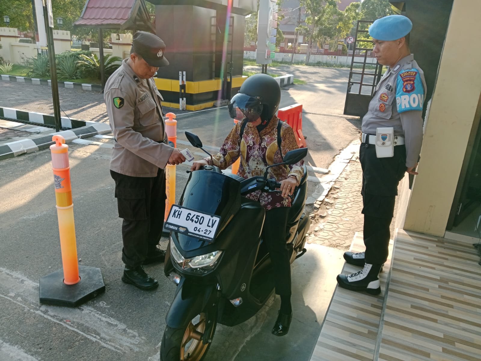 Seruyannews.com, KUALA PEMBUANG – Polres Seruyan – Kasi Propam Polres Seruyan melalui Kanit Provos Aipda Novaris Andrianto laksanakan giat cek suhu tubuh seluruh personel Polres Seruyan, Jumat (26/05/2023).Pagi