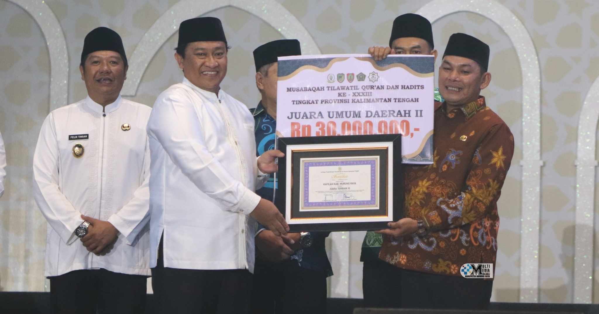 Puruk Cahu, Seruyannews – Kafilah Kabupaten Murung Raya berhasil mencatat prestasi membanggakan dengan meraih Juara Umum Ketiga pada ajang Musabaqah Tilawatil Qur’an dan Hadits (MTQH) XXXIII Tingkat Provinsi Kalimantan Tengah. Pengumuman tersebut disampaikan pada malam penutupan MTQH di Arena Tiara Batara, Muara Teweh, Sabtu (21/11/2025), dipimpin langsung oleh Wakil Gubernur Kalteng, Edy Pratowo.