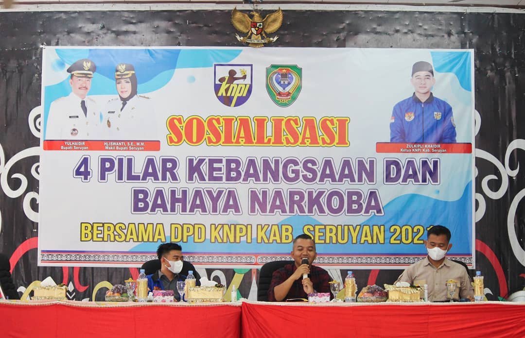 SERUYANNEWS.COM – Ketua DPRD Seruyan Zuli Eko Prasetyo menjadi narasumber Sosialisasi Empat Pilar Kebangsaan yang digelar DPD Komite Nasional Pemuda Indonesia (KNPI) Kabupaten Seruyan, di Gedung Serbaguna Kuala Pembuang, Sabtu 26 Juni 2021.