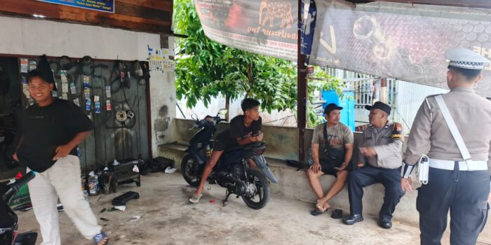 “Kami hadir untuk bersilaturahmi dan membangun komunikasi yang baik dengan masyarakat. Kehadiran polisi di tempat usaha seperti bengkel ini diharapkan dapat memberikan rasa aman serta mencegah potensi gangguan kamtibmas,” ujar AIPTU ANDI SUGIYANTO.