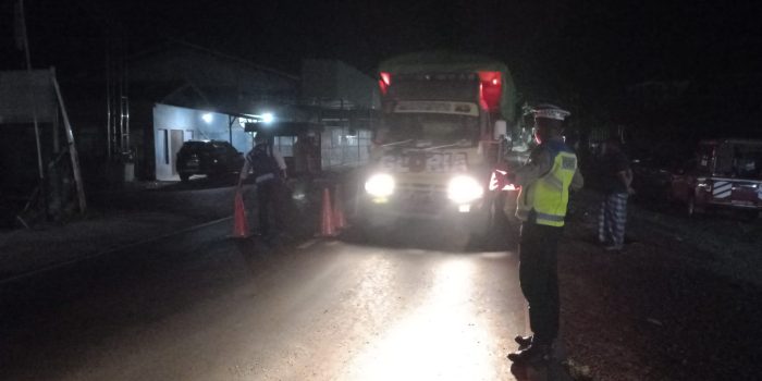 Petugas gabungan saat mengamankan situasi lalu lintas pada masa penutupan sementara tahap II Jembatan Asam Baru, Kamis malam, 8 Juni 2023