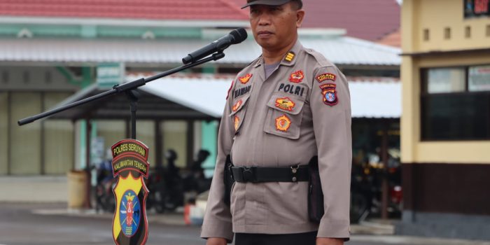 Seruyannews.com, KUALA PEMBUANG – Kabag SDM Polres Seruyan AKP Wawan Aryana pimpin apel pagi dan memberikan arahan kepada Personel Polres Seruyan Jajaran Polda Kalteng di halaman Polres Seruyan Jalan Ahmad Yani Kuala Pembuang, Selasa (14/3/2023)