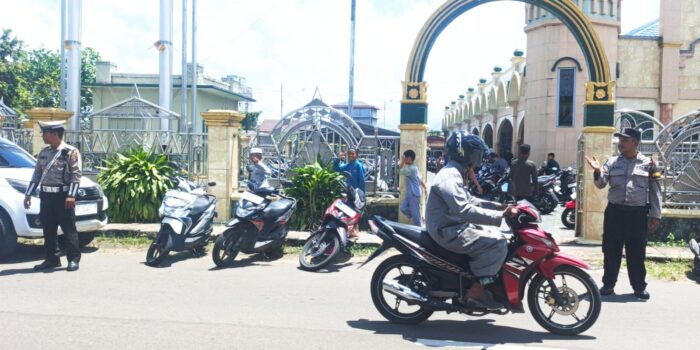 Dalam pelaksanaannya, petugas kepolisian melakukan pengamanan di sekitar wilayah masjid, termasuk pengaturan arus lalu lintas di sekitar lokasi untuk mengantisipasi kepadatan kendaraan milik jamaah. Personel juga memastikan area parkir kendaraan dalam kondisi aman dan mengawasi situasi lingkungan sekitar masjid selama ibadah berlangsung.