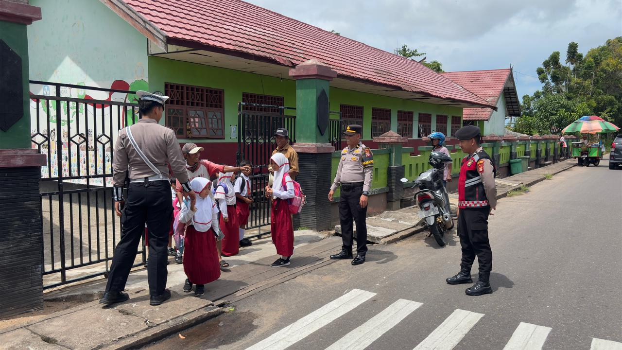 Dalam pelaksanaannya, petugas kepolisian mengatur arus kendaraan yang melintas di sekitar SDN 2 Kuala Pembuang I, membantu siswa menyeberang jalan, serta memastikan proses penjemputan berjalan tertib dan aman.