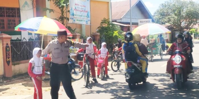 Dalam pelaksanaannya, petugas kepolisian mengatur arus kendaraan yang melintas di sekitar sekolah, membantu siswa menyeberang jalan, serta memastikan proses penjemputan berjalan tertib dan aman.