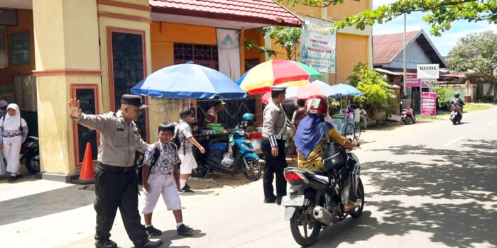 Dalam pelaksanaannya, petugas kepolisian mengatur arus kendaraan yang melintas di sekitar sekolah, membantu siswa menyeberang jalan, serta memastikan proses penjemputan berjalan tertib dan aman.