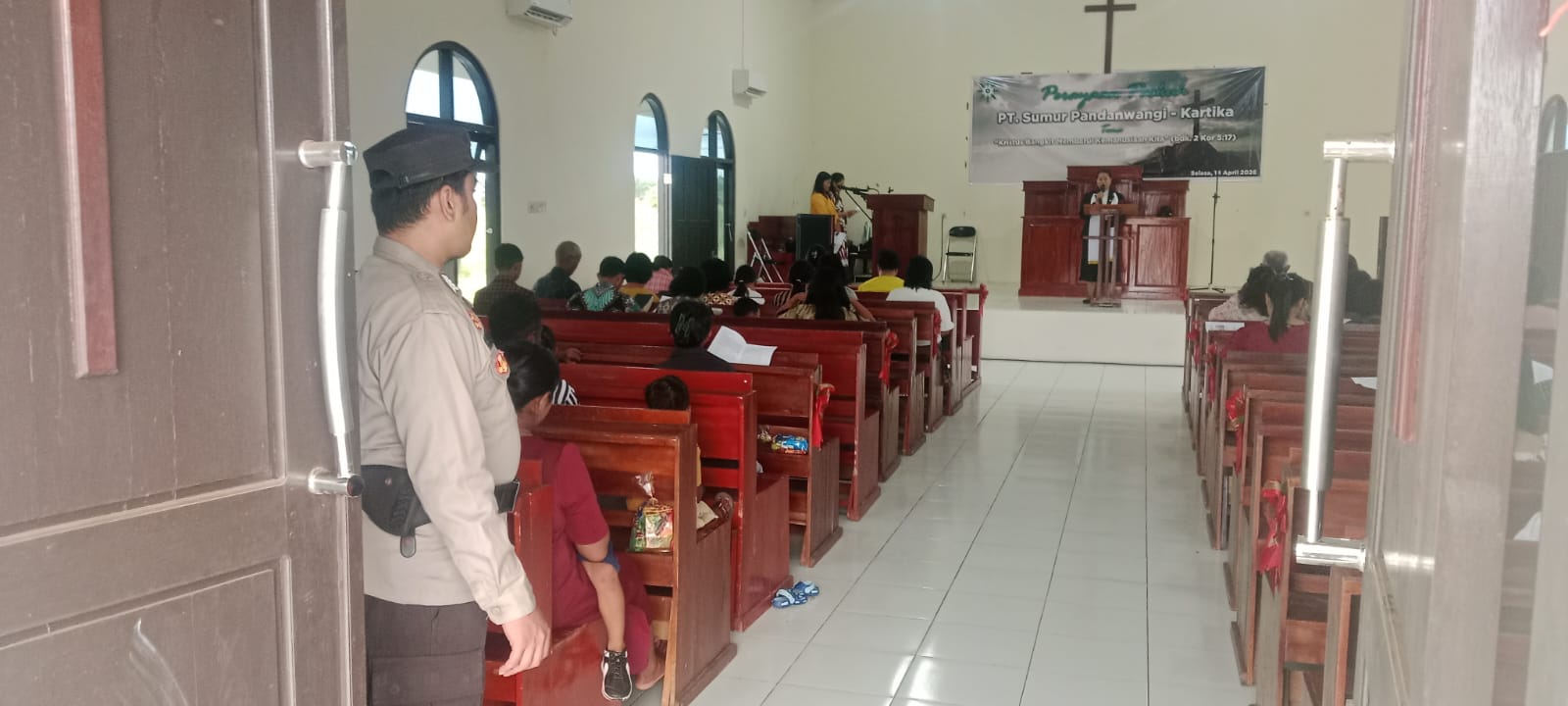 Seruyannews.com, POLRES SERUYAN – Personel Polsek Seruyan Hilir melaksanakan pengamanan Ibadah dan Perayaan Paskah Tahun 2026 di Gereja Oikumene Pniel PT. Sumur Pandan Wangi – Kartika Bakti, Kecamatan Seruyan Hilir Timur, Selasa (14/4/2026) sore. Kegiatan yang berlangsung mulai pukul 16.00 WIB hingga selesai ini dipimpin langsung oleh Kapolsek Seruyan Hilir, IPTU Pramono.