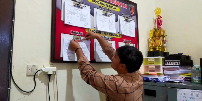 Seruyannews.com, KUALA PEMBUANG – Polres Seruyan – Anggota Sat Reskrim Polres Seruyan Polda Kalteng sedang melaksanakan penyusunan Rencana Kegiatan Harian Mingguan dan Bulanan di Ruangan URMIN untuk memfokuskan dan mendokumentasikan setiap giat yang dilaksanakan di Sat Reskrim Polres Seruyan. Sabtu (03/06/2023) pagi