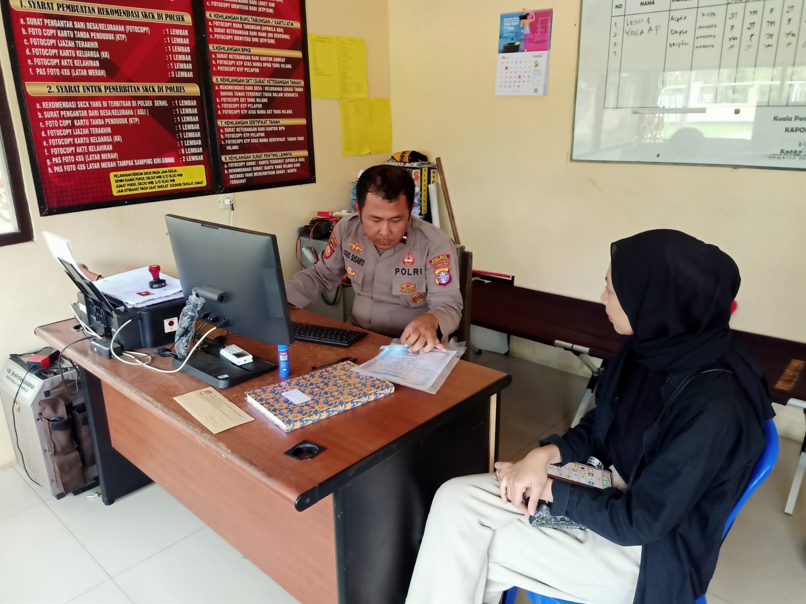 Pelayanan yang diberikan kepada masyarakat dalam bentuk pembuatan surat keterangan kehilangan barang menjadi kegiatan rutin personil Polsek Seruyan Hilir Polres Seruyan.